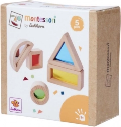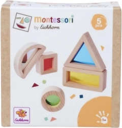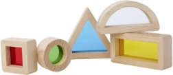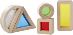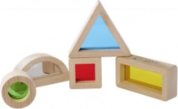 Blocurile în forme diferite invită la experimente cu lumina, culorile și formele. Copiii pot privi lumea prin lentilele colorate, pot combina culorile sau se pot observa în efectul de oglindă. Prelucrarea atentă din lemn de fag solid garantează o senzație plăcută la atingere și durabilitate îndelungată.
