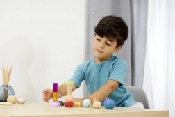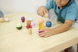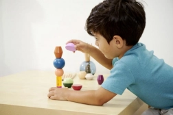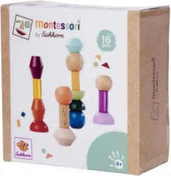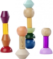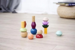 Blocurile sunt realizate din lemn certificat FSC de înaltă calitate și sunt destinate copiilor de la 3 ani. Setul susține în mod natural principiile Montessori – sortare, asamblare și descoperirea relațiilor dintre forme și culori, dezvoltând totodată motricitatea fină și imaginația spațială.