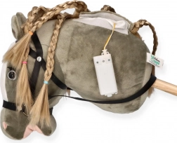Drăguț și durabil, căluțul pe băț pentru joacă distractivă acasă și afară. Modelul Hobby Horse cu cap moale se ține confortabil în mână, este potrivit pentru copii de la 3+ și îndeplinește standardele CE. Dimensiuni totale 70 × 13 cm, lungimea bățului 40 cm.