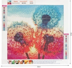 Mozaicul cu diamante este alegerea ideală pentru oricine caută un hobby liniștitor și în același timp satisfăcător. Așezi treptat pietricelele colorate pe grila autoadezivă tipărită în prealabil, urmând simbolurile, iar astfel ia naștere un tablou sclipitor cu motiv de păpădii. Lucrarea finală poate fi înrămată sau agățată ca atare.