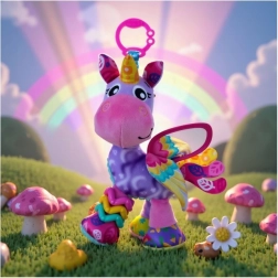 Drăgălașul unicorn Stella de la Playgro este o jucărie suspendată foarte pufoasă pentru cei mai mici, care susține dezvoltarea simțurilor și distrează atât în călătorii, cât și acasă. Oferă oglindă pentru auto-descoperire, elemente foșnitoare și zornăitoare, texturi variate și modele contrastante pentru stimularea văzului, tactilului și auzului. Datorită clipului practic în formă de C o poți fixa ușor pe cărucior, scaun auto sau pătuț.