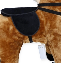 - În burtică se află modulul cu baterii. După introducerea a 2× AA (nu sunt incluse), căluțul produce sunete: