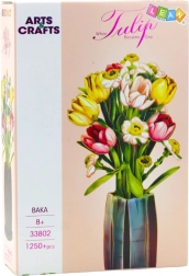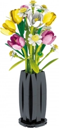 Acest set creativ îți permite să construiești un buchet colorat de lalele și margarete, completat de o vază modernă din piese. După asamblare, decorațiunea măsoară aproximativ 36,6 cm înălțime și se potrivește perfect în interioare moderne – de la living la biroul de lucru.