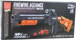 Asamblează un model impresionant al carabinei tactice M4 BERNELLI cu mecanism cu adevărat funcțional. După armare și apăsarea trăgaciului, modelul lansează proiectile din piese, oferind o experiență interactivă și distractivă. Execuția precisă a patului, țevii, dispozitivelor de ochire și încărcătorului conferă modelului un aspect realist.
