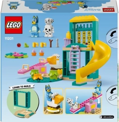 Descoperă setul de construcție colorat, inspirat de serialul Bluey, unde Bluey și Pătatul se distrează pe terenul de joacă cu tobogan, leagăn, ansamblu de cățărat și un pelican rotativ. Construcția ușoară cu piesa de bază mare și instrucțiuni simple susține creativitatea, încrederea în sine și rezolvarea problemelor la copiii de la 4 ani.