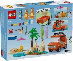 Bucură-te de o aventură în familie cu personajele BLUEY, Bingo și mama într-un set colorat cu mașină, plajă și o mulțime de accesorii. Acoperișul rabatabil al mașinii, plăcile de surf, castelul de nisip și minifigurinele jucăușe încurajează creativitatea, imaginația și primele abilități de construcție ale copiilor de la 4 ani.
