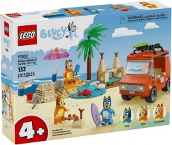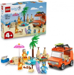 Include minifigurinele BLUEY, Bingo și mama – pregătite pentru surf, construit castele și aventuri de vară.