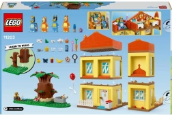 Această casă de familie colorată aduce personajele îndrăgite Bluey, Bingo, mama Chili și tata Bandit, împreună cu o dotare bogată pentru aventuri zilnice și trăsnite. Fiecare cameră poate fi detașată și rearanjată, astfel încât copiii își pot crea cu ușurință propriile scene din serial și povești noi.