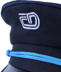 - Șapcă neagră/albastră, paletă albă, fluier albastru