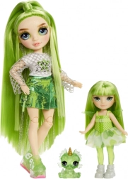 Intră în lumea fanteziei cu păpușa Rainbow High Micuța soră zână Emerald, într-un stil verde strălucitor. Include un animăluț care poate purta aripile ei și accesorii pentru nenumărate schimbări de ținută. Picioarele transparente, cu o ușoară tentă de culoare, se asortează perfect cu părul lung verde și detaliile sclipitoare ale outfitului.