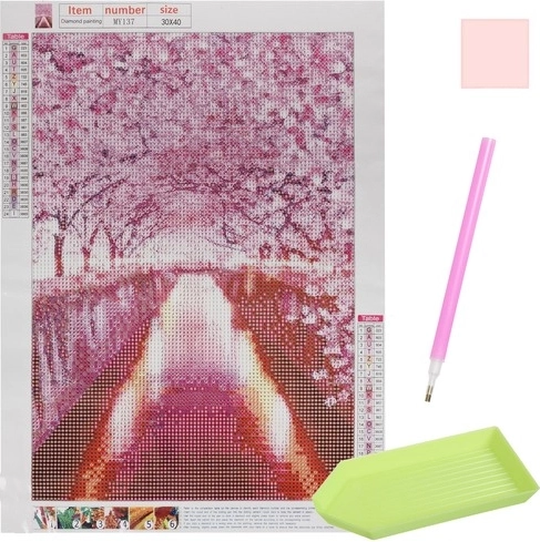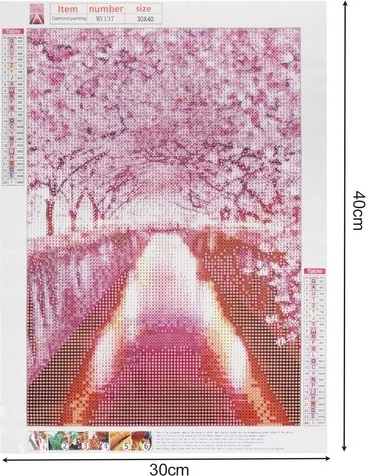 Descoperă lumea relaxantă a picturii cu diamante și creează-ți propria lucrare de artă cu motivul romantic al unei alei de cireși japonezi. Setul conține tot ce ai nevoie și este ideal atât pentru începători, cât și pentru avansați. Datorită pânzei codificate, lucrul este ușor și precis, iar tabloul final strălucește cu un luciu sclipitor. O modalitate excelentă de a te relaxa, de a dezvolta creativitatea și de a obține o decorațiune interioară originală.