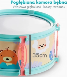 Descoperă bucuria muzicii cu setul de tobe pentru copii WOOPIE – un set colorat și interactiv conceput pentru micii muzicieni. Este sigur, durabil și plin de funcții care susțin creativitatea, coordonarea și dezvoltarea. Datorită plasticului ușor, este ușor de întreținut și sigur în timpul jocului, iar culorile vii și motivele de basm invită la joacă de la primul ritm.