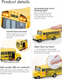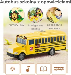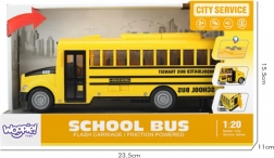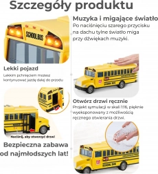 Autobuzul școlar interactiv WOOPIE la scară 1:20 îi va încânta pe micii fani ai vehiculelor și ai transportului urban. Detaliile realiste, farurile și sunetele de rulare îi implică pe copii în joc, în timp ce ușile care se deschid susțin scenarii creative și jocul de rol. Datorită mecanismului cu inerție (fricțiune), este suficient să împingi autobuzul ușor, iar el va parcurge singur câțiva metri.