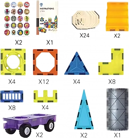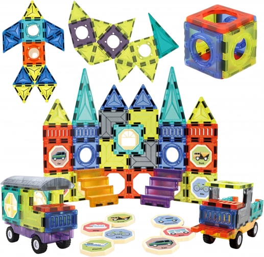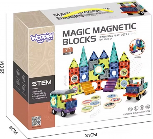 Descoperă lumea creativității cu cărămizile magnetice 3D de la WOOPIE. Cu 71 de piese, copiii pot construi castele fantastice, vehicule și forme spațiale. Magnetii puternici, piesele colorate transparente și autocolantele cu teme de mijloace de transport asigură ore îndelungate de distracție și învățare prin joacă. Dezvoltă excelent motricitatea fină, gândirea logică și imaginația spațială.