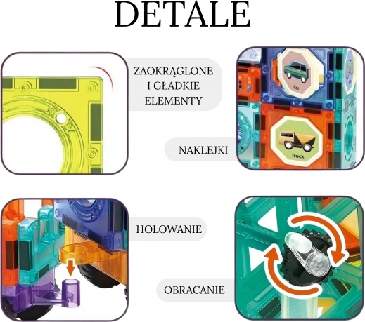 Acest set creativ de cărămizi magnetice este ideal pentru copii de la 3 ani. Datorită magneților puternici, iau naștere construcții stabile, de la modele plane simple până la clădiri 3D elaborate. Piesele transparente și colorate invită la explorarea formelor și culorilor și susțin învățarea prin joc.