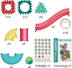 - Plăcuțe magnetice, jgheaburi, curbe, tuburi, bile, instrucțiuni ilustrative