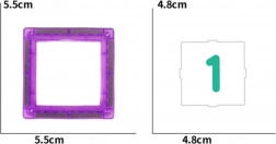 - 8 pătrate albastre, 7 pătrate roșii, 9 pătrate gri, 7 pătrate mov, 9 pătrate verzi, 30 de carduri educative cu numere