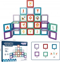 Setul magnetic de construcție WOOPIE îmbină învățarea cu jocul într-un singur produs. Datorită materialelor de calitate și îmbinărilor magnetice puternice, modelele sunt stabile, iar manipularea pieselor este ușoară chiar și pentru mâinile mici ale copiilor. Elementele colorate și 30 de cartonașe educaționale cu litere îi ajută pe cei mici să descopere alfabetul și să formeze primele cuvinte într-un mod distractiv.