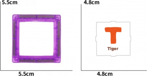 - 8 pătrate albastre, 7 pătrate roșii, 9 pătrate gri, 7 pătrate mov, 9 pătrate verzi, 30 de cartonașe educaționale cu litere