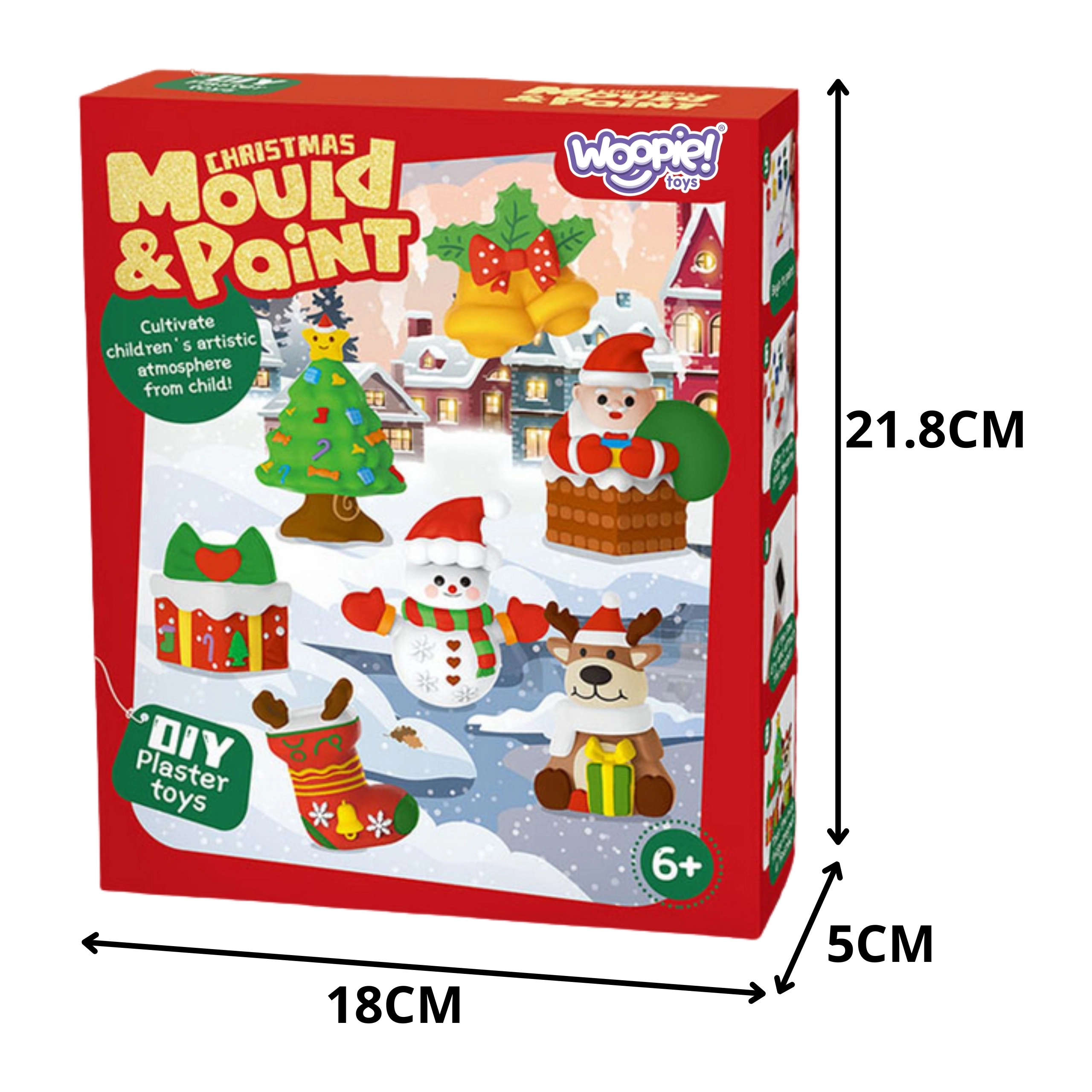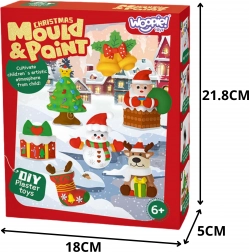 Descoperă farmecul creației cu setul pentru copii WOOPIE – toarnă ghipsul în forme cu motive de Crăciun, lasă-l să se usuce, apoi pictează figurinele cu culorile incluse. Pași simpli, bucurie rapidă și rezultate frumoase, care pot decora camera copilului sau pot fi un cadou drăguț.