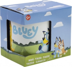 Cană ceramică stilată cu motivul Bluey, cu volum de 325 ml, care va bucura atât copiii, cât și adulții. Livrată într-o cutie cadou, ideală pentru utilizare zilnică sau ca cadou original.
