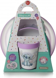 Drăguțul set de masă pentru copii 3‑în‑1 cu motivul LILO & STITCH face fiecare masă mai plăcută. Conține farfurie, bol și pahar, este fără BPA, iar piesele sunt compatibile cu cuptorul cu microunde și mașina de spălat vase (vezi specificațiile).