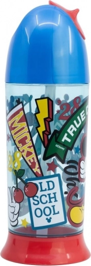 Sticlă pentru copii stilată cu motiv MICKEY MOUSE, cu capacitate de 280 ml, ideală pentru școală, excursii și sport. Oferă capac de siguranță anti-scurgere, paie practică și este realizată din materiale fără BPA și ftalați. Se întreține ușor și este excelentă pentru utilizarea zilnică.