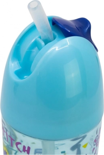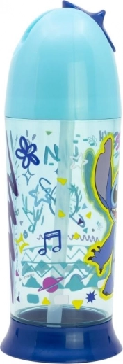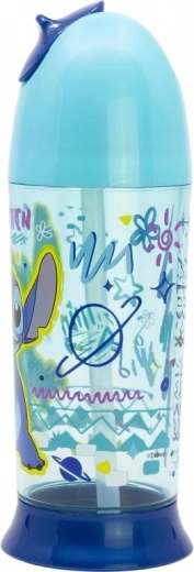 Sticlă din plastic pentru copii, pentru băut, cu motivul STITCH, cu un volum de 280 ml, ideală pentru drumuri și pentru școală. Oferă capac de siguranță anti-scurgere, pai practic și este fără BPA și ftalați. Curățarea ușoară facilitează utilizarea zilnică.