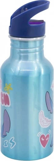 Sticlă din aluminiu stilată și rezistentă, cu motivul STITCH, ideală pentru școală, sport și excursii. Oferă un capac înșurubabil, pai anti-picurare împotriva vărsării și un mâner practic pentru transport. Materialul este fără BPA și sigur pentru utilizare zilnică.