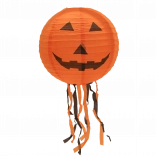 Creați o atmosferă plăcut înfricoșătoare cu lampionul rotund de Halloween, cu diametrul de 30 cm. Lampionul este din hârtie ușoară, iar datorită ciucurilor de la bază arată foarte efectuos când este suspendat. Sunt disponibile trei motive expresive: dovleac (portocaliu), lilieci (mov) și păianjeni (alb).
