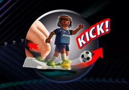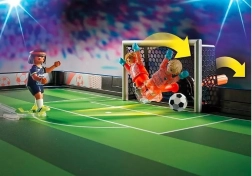 Desfășurați arena pliabilă, alcătuiți echipele și începeți meciul! Acest set din gama PLAYMOBIL Sports & Action aduce un joc dinamic cu funcții grozave. Datorită mecanismului practic, jucătorii pot șuta mingea și pot ținti precis poarta, în timp ce portarii pe tije mobile pot reacționa rapid și pot bloca șuturile.