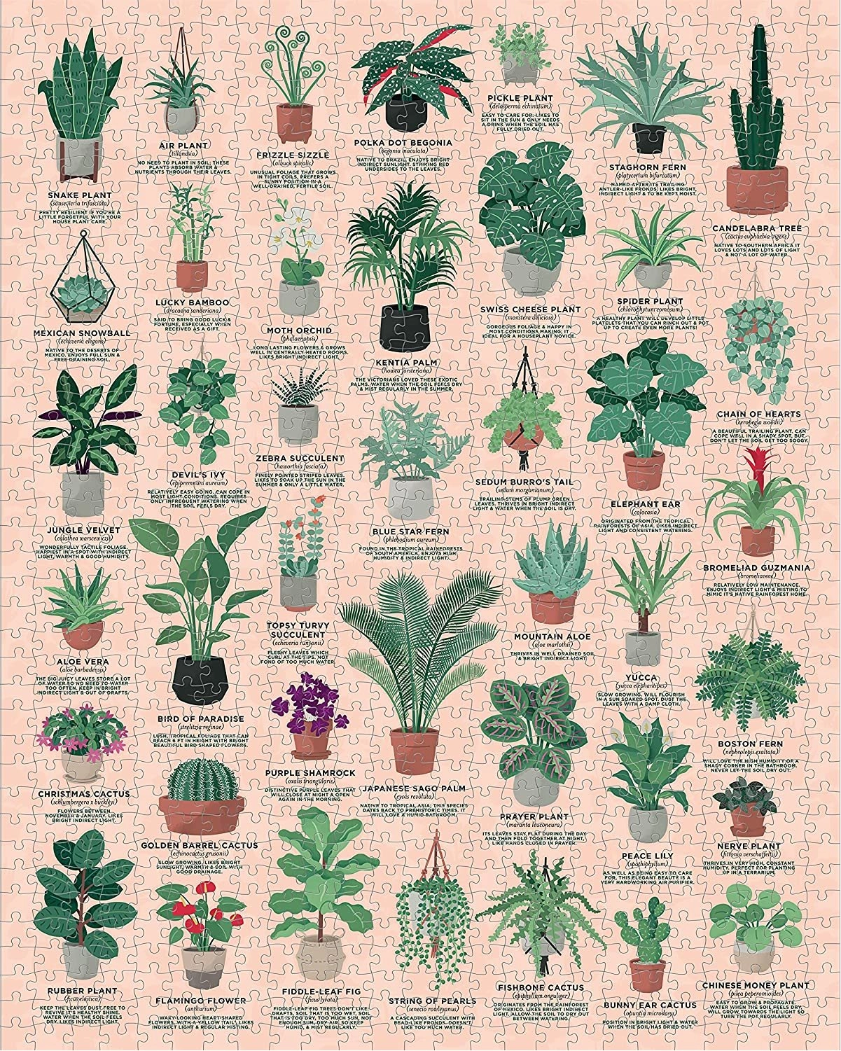 Acest puzzle stilat va încânta pe oricine iubește botanica și relaxarea prin asamblare. Ilustrația bogată prezintă peste 30 de plante de interior îndrăgite și le completează cu curiozități și recomandări de îngrijire (în engleză). Datorită prelucrării precise a pieselor, asamblarea este cursivă, iar rezultatul va arăta grozav înrămat pe perete.