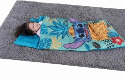 Sac de dormit confortabil pentru copii, cu motivul STITCH, ideal pentru dormit la prieteni, tabere de vară și excursii în familie. Oferă material plăcut, dimensiuni practice 140 × 60 cm și un design jucăuș pe care copiii îl vor îndrăgi.