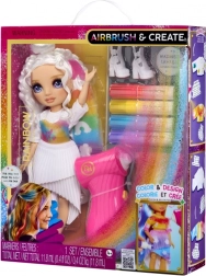Păpușa Rainbow High Airbrush & Create este ca o pânză goală pentru micii designeri. Cu ajutorul markerelor lavabile incluse și al aplicatorului cu aer, creezi ușor un look original – de la tranziții delicate la modele accentuate. Designul final poate fi oricând spălat pentru a începe din nou.