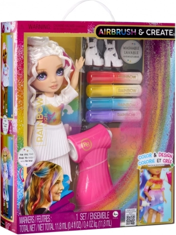 Descoperă lumea creativității cu păpușa Rainbow High Airbrush & Create. Acest set unic le permite copiilor să își proiecteze propriul stil al păpușii folosind markere lavabile și un instrument de tip airbrush. Păpușa este complet albă și pregătită pentru ideile tale – colorează-i părul, hainele și pantofii. Datorită cernelii lavabile poți crea iar și iar, dezvolta imaginația și te poți bucura de joacă creativă fără murdărie.