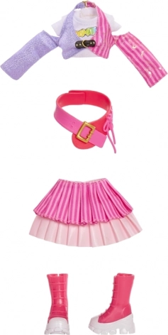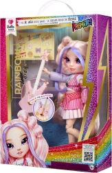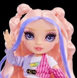 - Design autentic Rainbow High în tonuri de roz, cu ținută și accesorii detaliate.