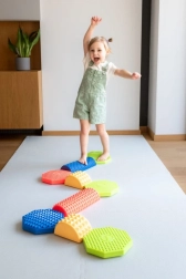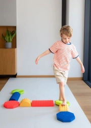 Asamblează orice traseu din pietre, blocuri și bârne colorate și transformă mișcarea în distracție. Fiecare piesă are înălțime diferită și suprafață reliefată pentru pas sigur și exerciții în siguranță. Excelent pentru activități ludice acasă, grădinițe, after-school și terapie senzorială.
