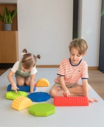Creează acasă sau la grădiniță o pistă senzorială distractivă pentru copii! Acest set de echilibru cu 8 piese în culori vii sprijină echilibrul, coordonarea și motricitatea fină și grosieră. Piesele cu textură antiderapantă oferă stimulare tactilă bogată, iar datorită capacității de până la 100 kg sunt potrivite pentru copii și adulți, pentru exerciții sau terapie.