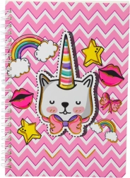 Un caiet adorabil cu motiv de pisică–unicorn îi va fermeca pe toți iubitorii de rechizite școlare colorate. Coperta roz moale, cu ilustrații vesele și format A5, se potrivește perfect în rucsac. 60 de file dictando oferă spațiu suficient pentru notițe, teme și însemnări de jurnal, iar legarea spiralat facilitează răsfoirea paginilor și scrisul confortabil.