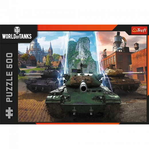 Bucurați-vă de asamblare cu puzzle-ul de calitate din 500 de piese cu motiv din jocul WORLD OF TANKS – E timpul pentru acțiune!. După finalizare, obțineți o imagine de 48 × 34 cm. Puzzle-ul de la Trefl încântă prin culori intense, hârtie calandrată cu reflexie fină și cerneluri sigure, ecologice.