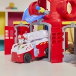 Remiză pe mai multe niveluri cu garaje, elemente funcționale și mașina de pompieri a lui Marshall, care susține jocul de echipă imaginativ.