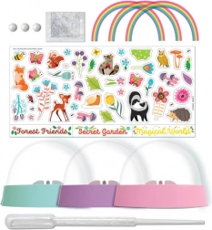 În pachet găsiți tot ce aveți nevoie pentru realizarea a până la trei globuri de zăpadă – de la cupole transparente și baze, la sclipici în culori vii, autocolante și un ghid clar. Datorită procedurii ușoare, proiectul este potrivit și pentru începători și este ideal ca dar sau ca decor pentru camera copilului.
