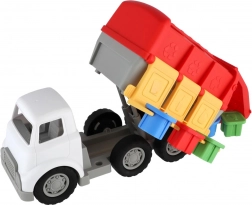 Mașina de gunoi din plastic pentru cei mici combină sortarea deșeurilor, introducerea formelor și învățarea culorilor. Datorită mersului liber se deplasează lin pe podea, are compartimente care se deschid și coșuri detașabile pentru joc realist. Excelentă pentru dezvoltarea motricității fine, gândirii logice și imaginației copiilor de la 18 luni.