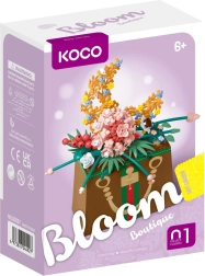 Descoperă farmecul construirii creative cu mini setul KOCO. Din 245 piese de plastic de calitate vei crea o floare ascunsă într-o poșetă elegantă, care va decora raftul, biroul sau va bucura ca un cadou. Datorită designului bine gândit, construcția este distractivă, iar rezultatul ferm și decorativ.