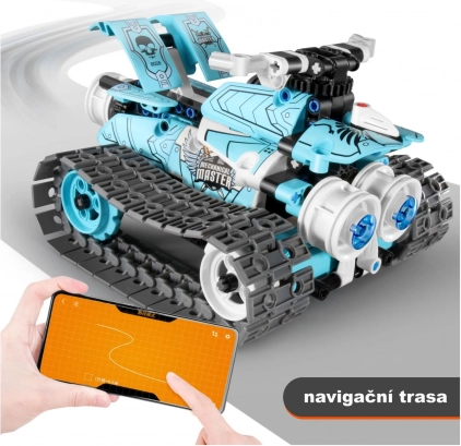 Setul de construcție iM.MASTER 3în1 aduce lumea creativă a roboticii moderne în camera copiilor. Din 398 piese din plastic, copiii pot construi trei modele funcționale, iar cu ajutorul telecomenzii la 2,4 GHz sau al modului de programare a traseului și mișcărilor le pot pune în mișcare cu ușurință. Șasiul stabil pe șenile și piesele mobile asigură un joc distractiv și educativ în același timp.