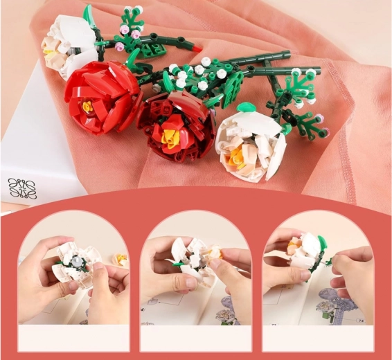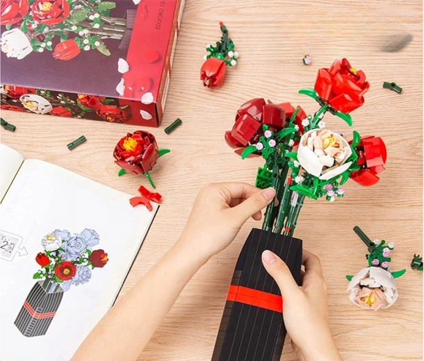 Set de construcție buchet de trandafiri în vază, 818 piese