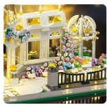 Modelul va încânta constructorii pretențioși: găsești aici coloane elegante și balustrade cu accente aurii, alei realiste, uși mobile și numeroase accesorii – de la o măsuță cu carte și foarfecă până la fortepiano și mici decorațiuni. Atmosfera de seară este completată de iluminarea LED, care luminează cupola și ferestrele și creează efectul unei grădini de iarnă.