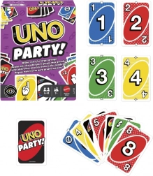 UNO Party aduce jocul dovedit al îndrăgitului UNO într-un format mai mare și mai gălăgios – ideal pentru petreceri, sărbători în familie și seri cu prietenii. Datorită celor 168 de cărți (de 1,5 ori pachetul clasic), se pot juca mai mulți jucători și tensiunea durează mai mult.
