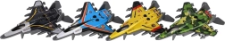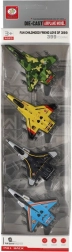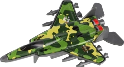 Set de patru avioane de vânătoare moderne cu caroserie metalică și mecanism de recul (pull-back), care oferă multă distracție micilor piloți. Fiecare avion are design atractiv, construcție robustă și culori originale, făcând jocul variat și captivant. Dimensiunea ideală de 10 cm se potrivește perfect în mâna copilului și ușurează manevrarea.