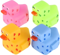 Vesela rață de baie cu design pixelat aduce multă distracție în fiecare baie. Datorită materialului moale, este plăcută la atingere, sigură pentru mâinile copiilor și plutește frumos la suprafață.